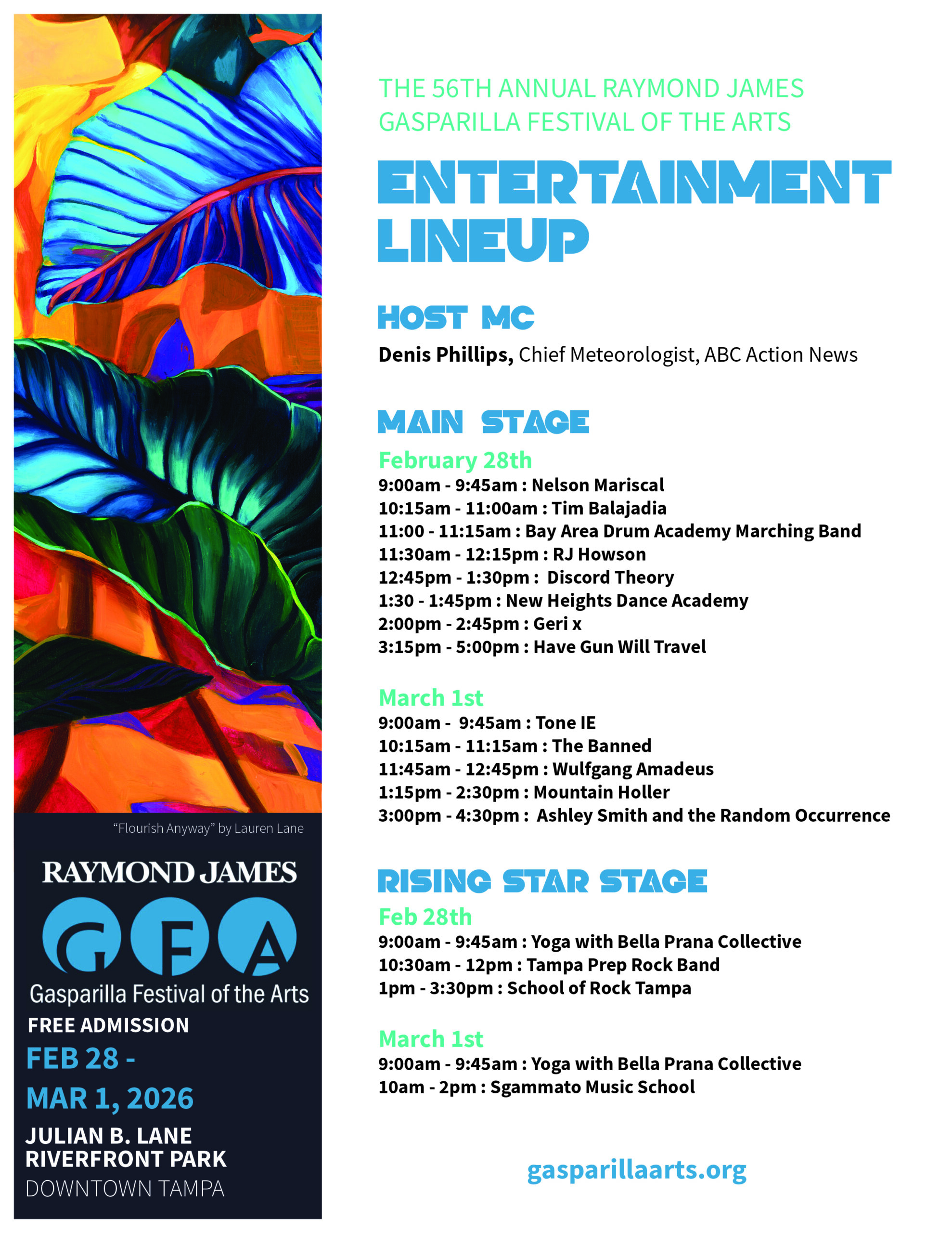 GFA supports performing artists, too! Two festival stages host music and performances by nationally recognized artists and some of the Tampa Bay area’s most talented acts.
